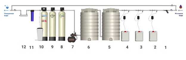 На третьем этапе устанавливаются блоки обезжелезивания. Фильтры очищают от металлов.